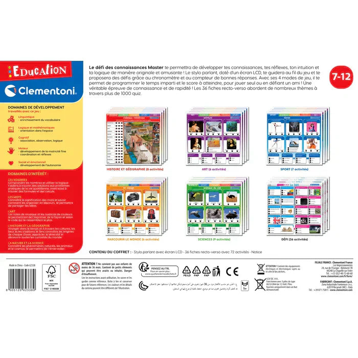 Thèmes abordés : Français, Mathématiques, Anglais, Histoire, Géographie et environnement, Art, Logique, Loisirs, Sports, Culture générale, Technologies et Sciences Naturelles.