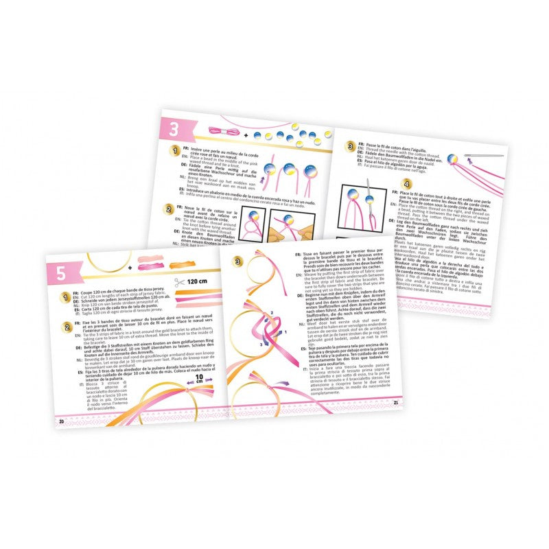 Réalise 5 bracelets tendances à partir de fils, perles et accessoires fluo ! Contient: perles, bandes de tissu jersey, fils de coton, breloques, chaînettes, fermoirs, anneaux…