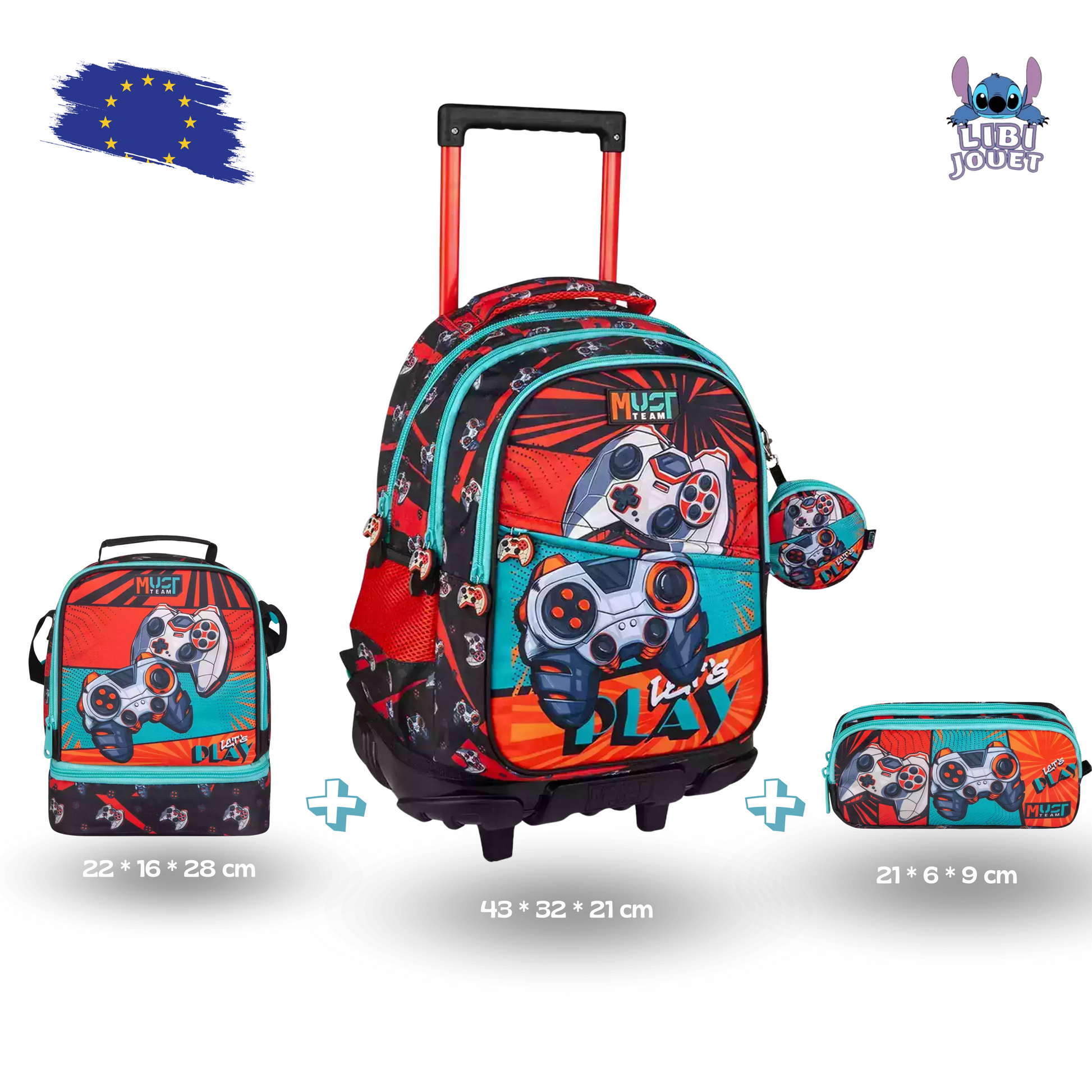 Cartable à roulettes Must team Let's Play pack de 3 pcs