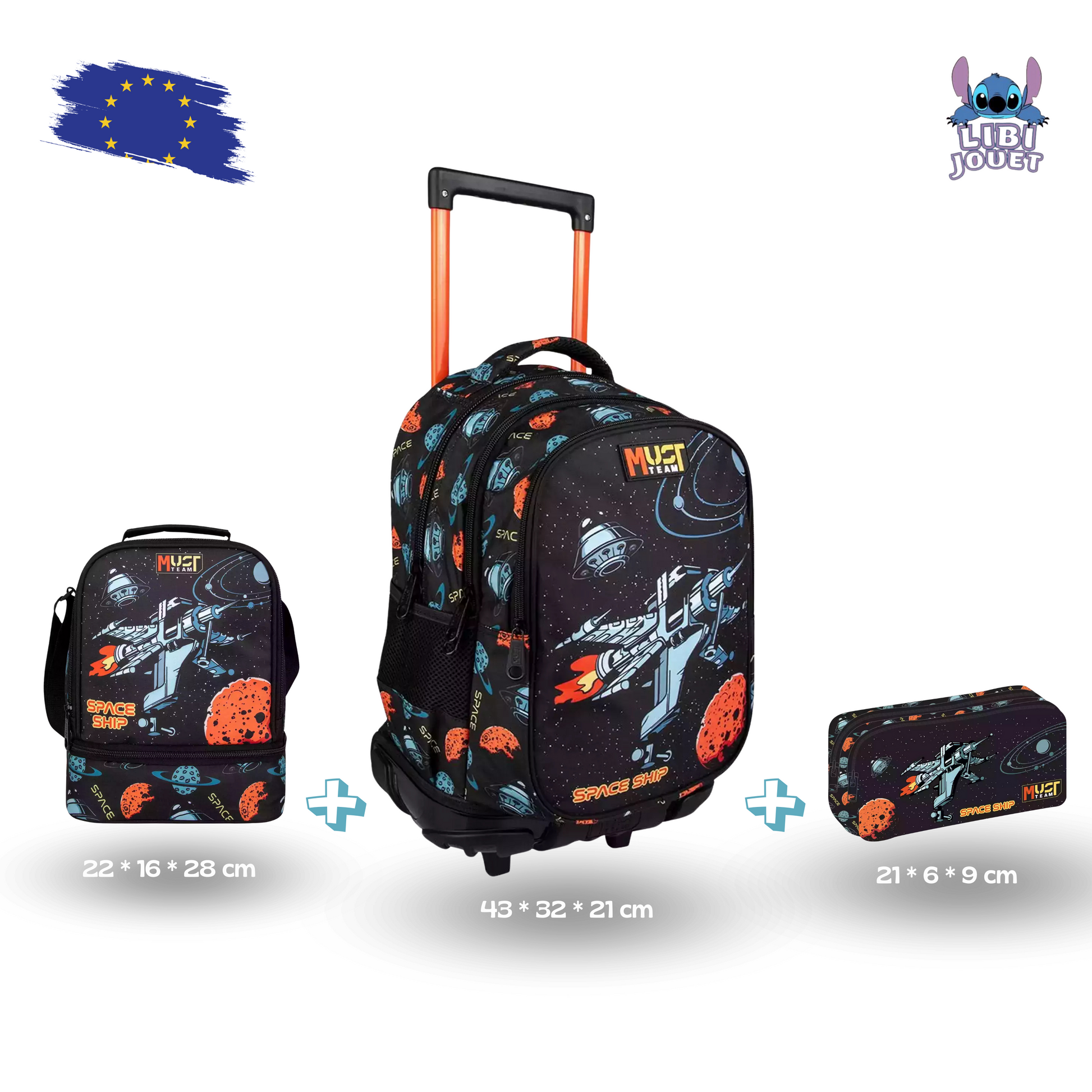 Cartable à roulettes Must team Spaceship pack de 3 pcs