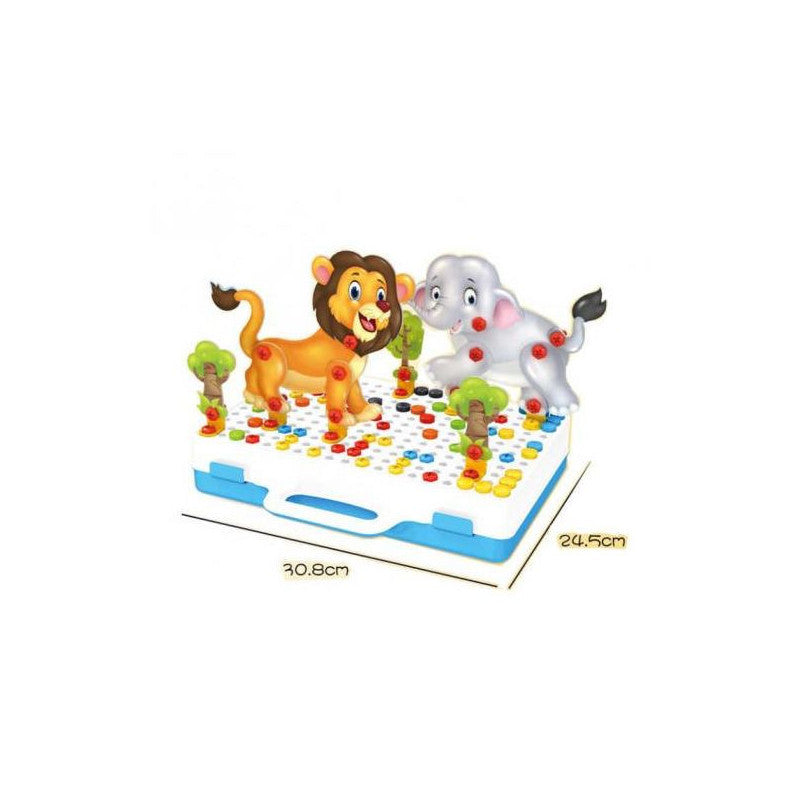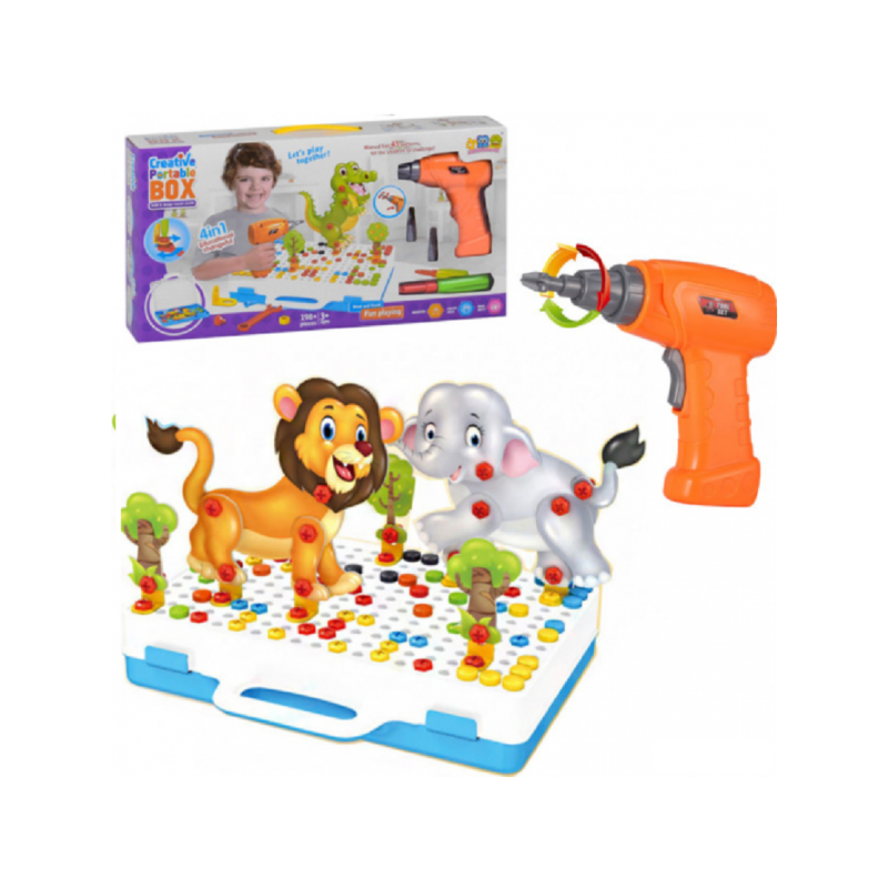 Utilisez une perceuse électrique et un tournevis pour assembler les plaques sur la grille de base pour construire des objets artisanaux 2D et 3D comme un lion, un singe, une girafe, etc. Les accessoires sont riches en couleurs et peuvent améliorer la capacité cognitive des enfants. On s'attend à ce qu'il cultive la capacité cognitive, l'imagination et la capacité de pensée critique.