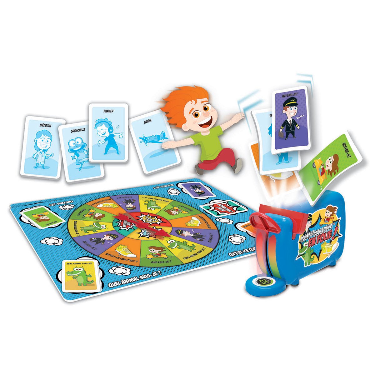 4 catégories de mimes, 3 manières de mimer... Le jeu "Devine ce que je mime en folie" propose de multiples possibilités de mime pour encore plus de fun ! Fais tourner la roulette pour savoir quelle catégorie mimer et comment : en mim'classic tu mimes normalement, en mim'challenge tu as une contrainte supplémentaire, et en mim'en folie tu mets des cartes dans le support carto'dingo et tu dois en faire deviner un maximum avant que le temps ne s’écoule et que les cartes restantes soient projetées en l’air !