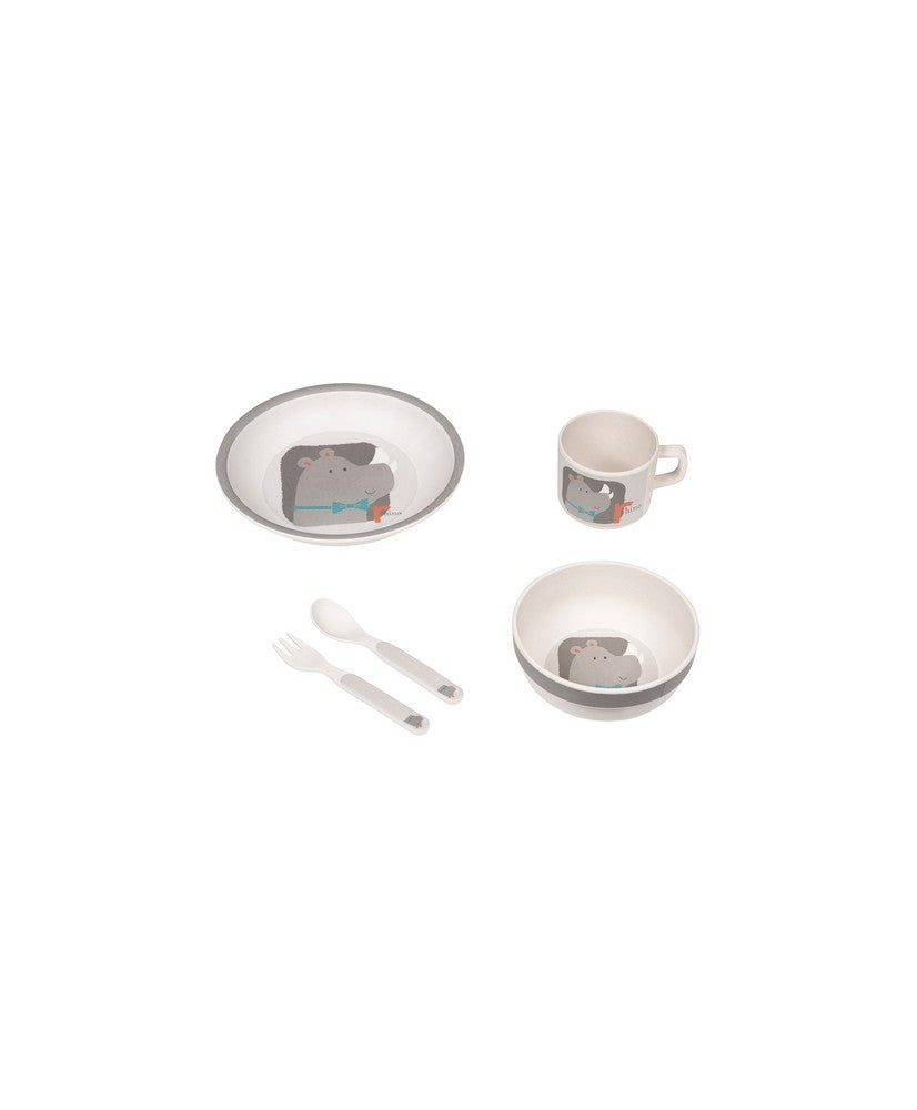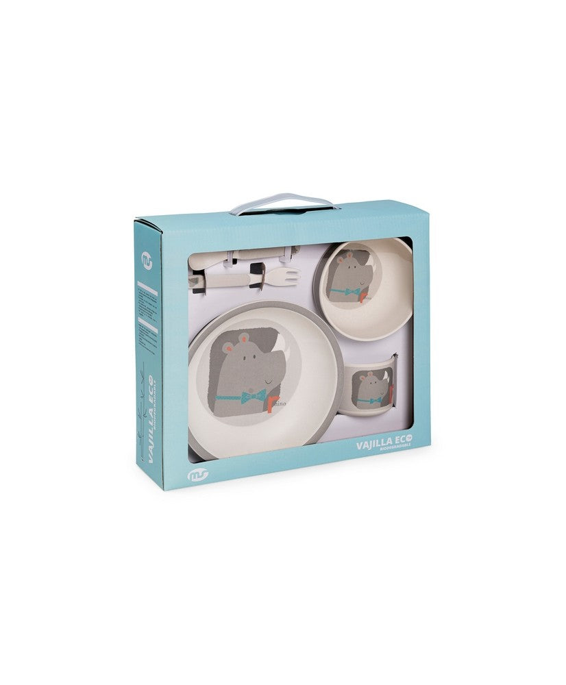 Cet ensemble comprend : 1 assiette plate, 1 bol, 1 cuillère, 1 fourchette et 1 verre. • 75 % de ce produit est fabriqué à partir de matériaux écologiques, biodégradables et recyclables tels que le bambou et la protéine de maïs. • Construit pour une longue durée de vie. • Ne contient pas de BPA, une alternative écologique remplaçant le plastique traditionnel. • Peut être lavé au lave-vaisselle. • Ne doit pas être placé dans le four, le congélateur ou le réfrigérateur.